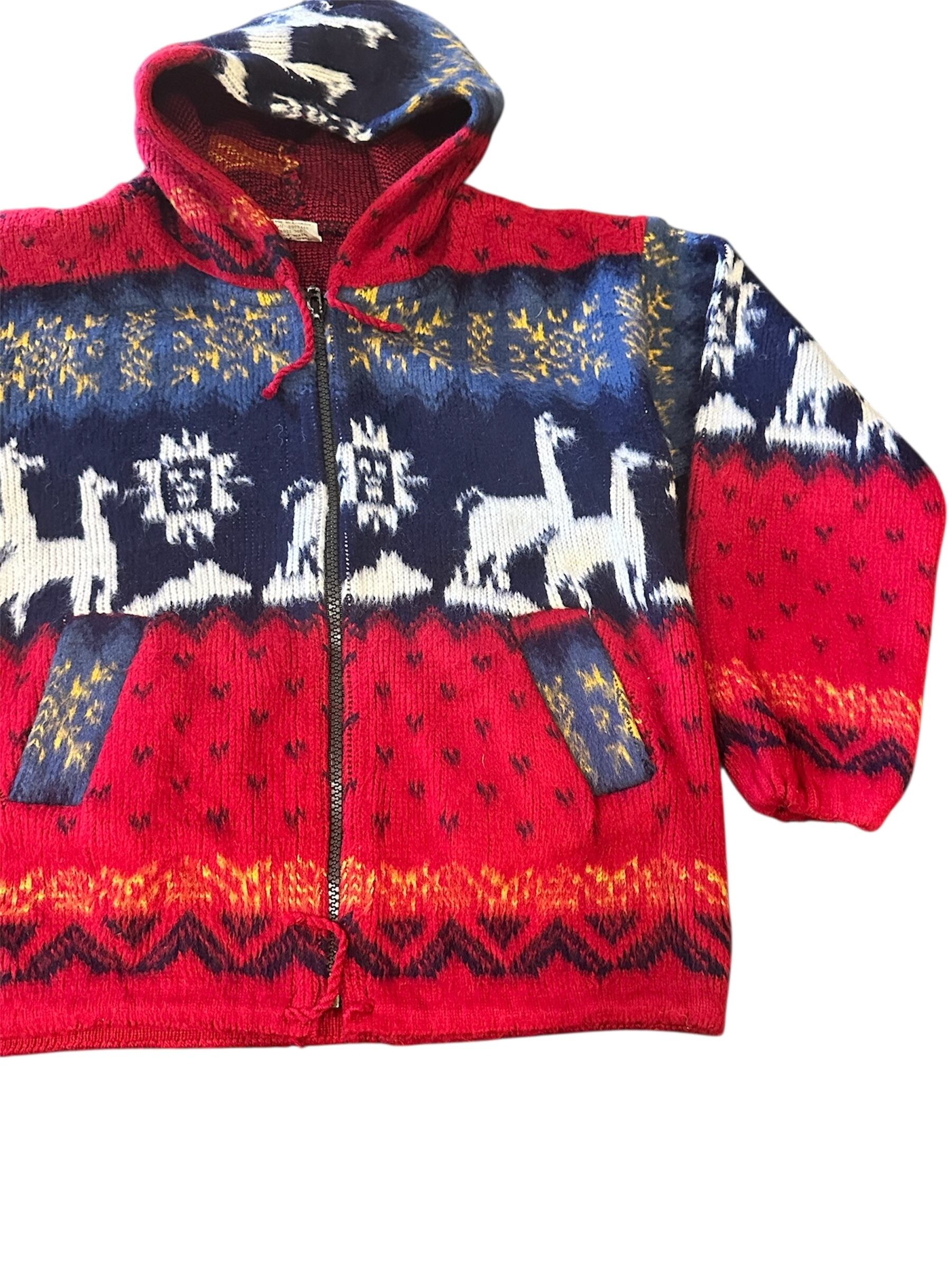 (120)90's 00's エクアドル製 ウールニット フーディー アウター ARTESANIAS TUNTAQUIMBA (T285)