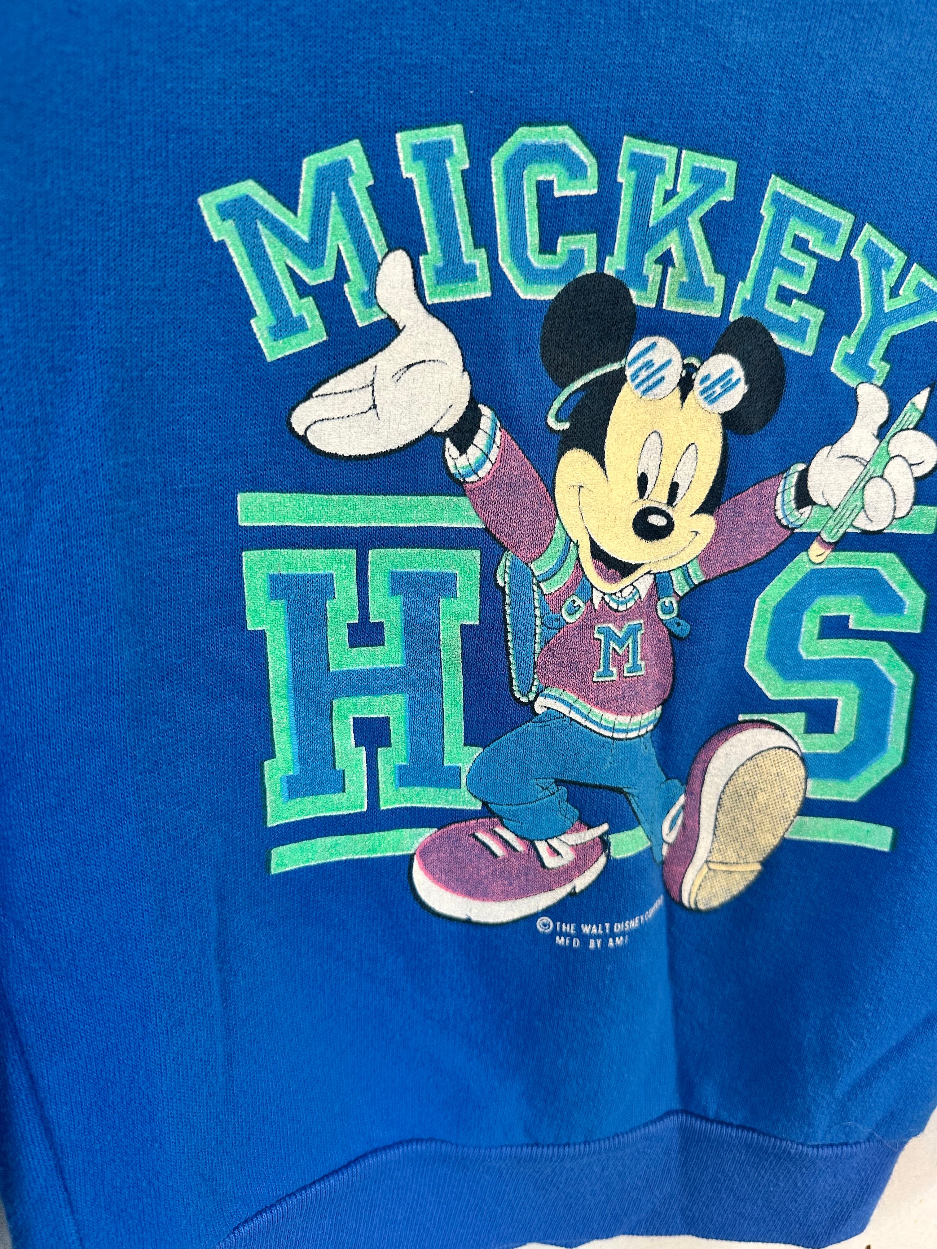 (110)USA 90's vintage ©️The walt disney company ミッキー mickey highschool スクール プリント スウェット トレーナー (LT149)