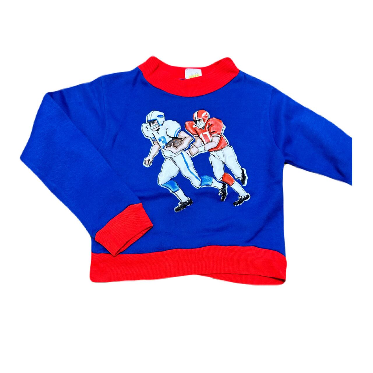 【90】ラグビー ロングTシャツ 発泡プリント トーラーナー プリントTシャツ 裏起毛 古着 キッズ古着〔LT14〕